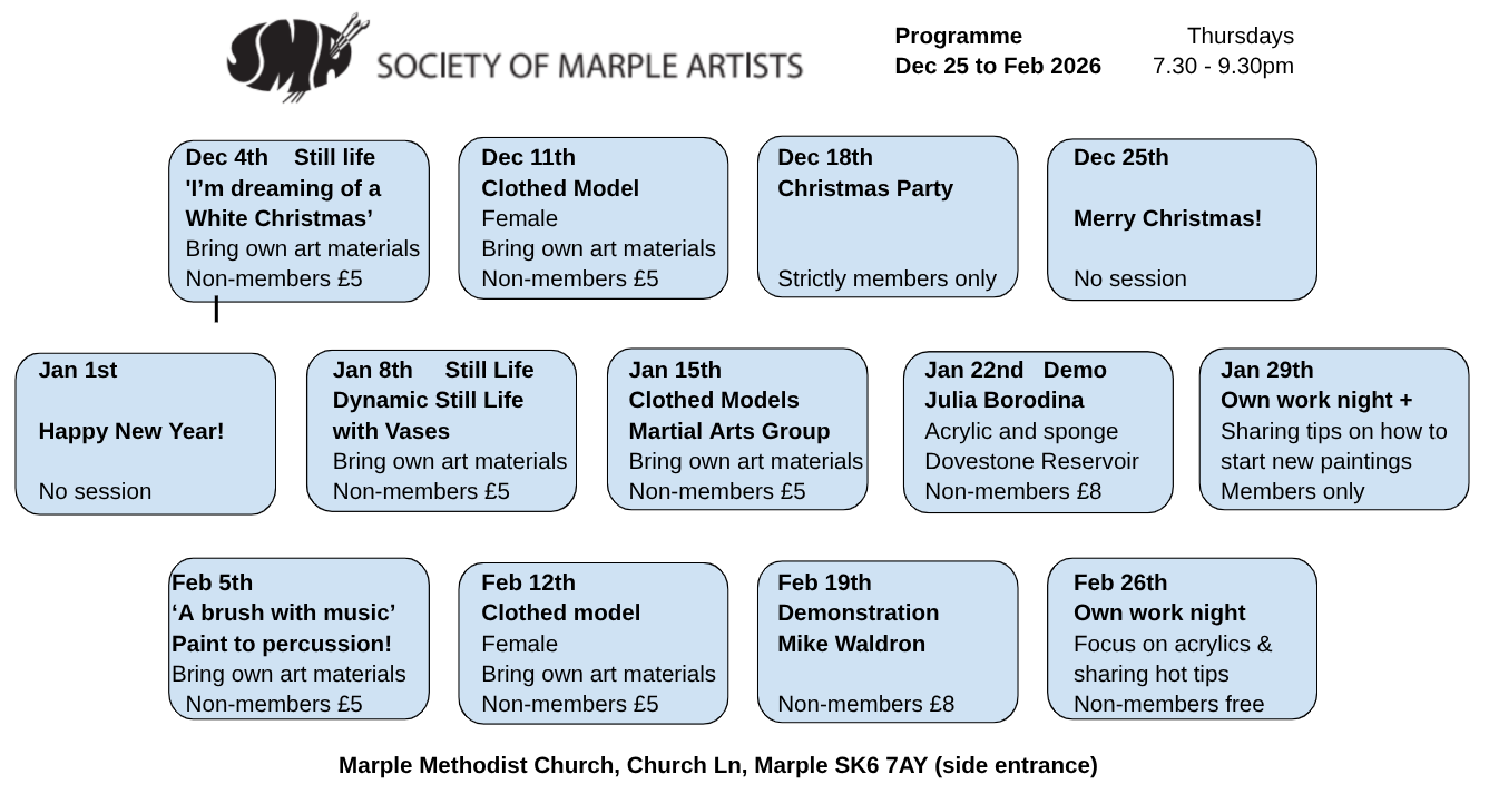 Here is our latest at-a-glance programme for the society covering the next three months.