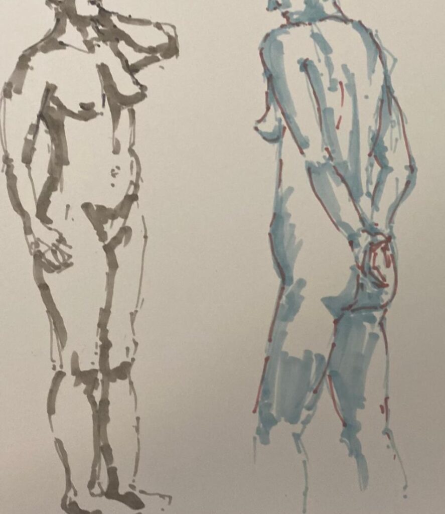 A super life drawing session, with a great model. Here is some of our work: