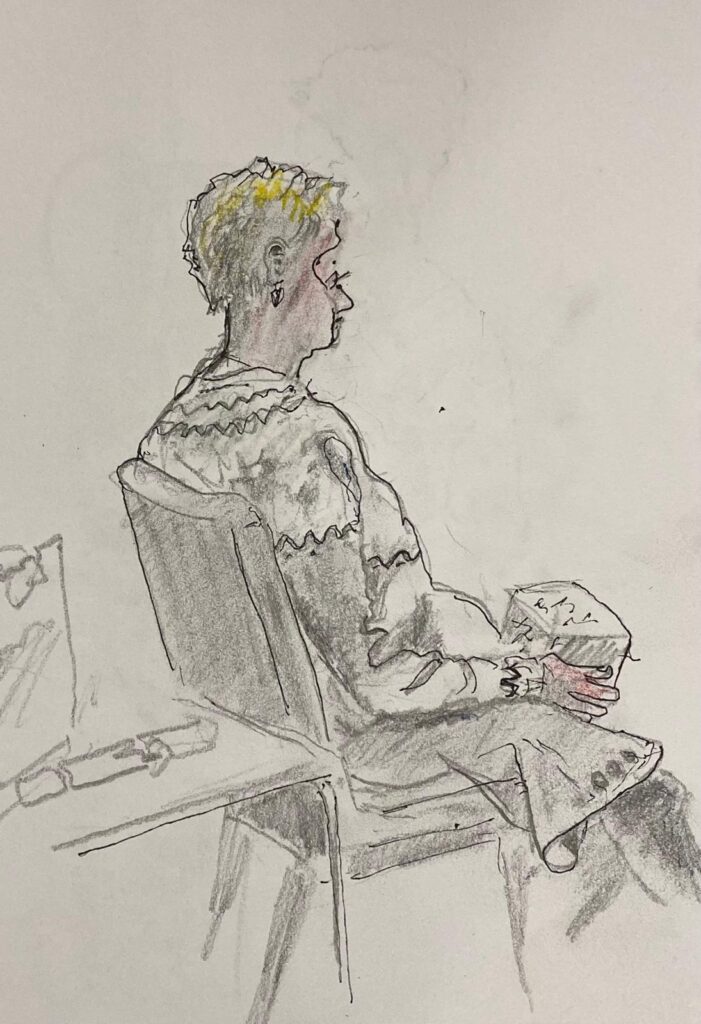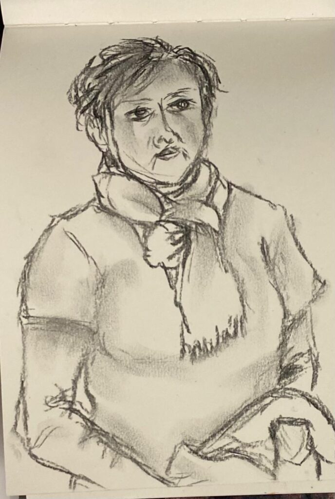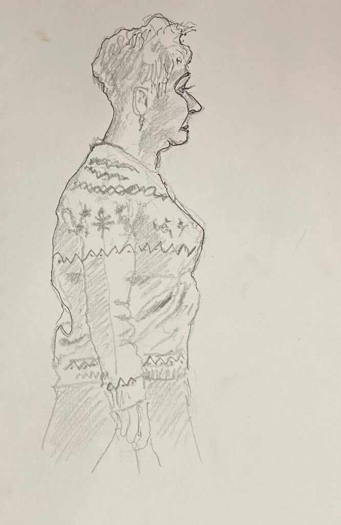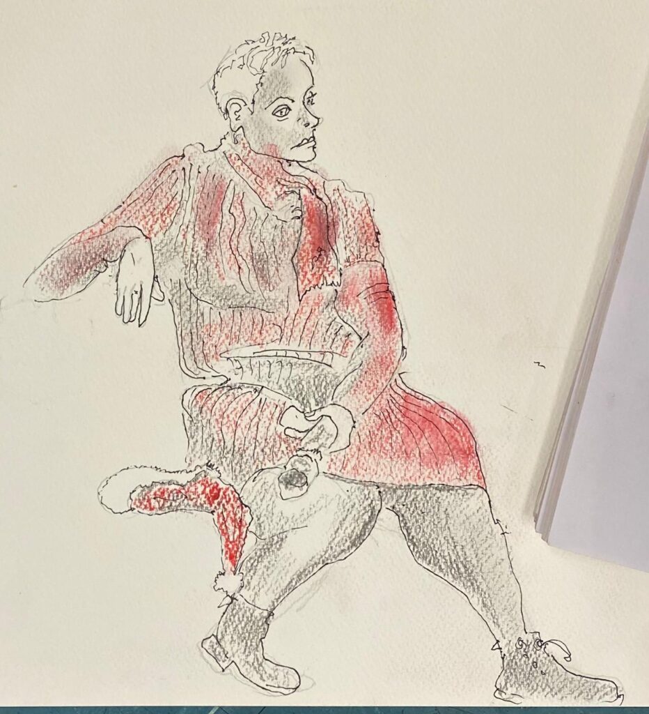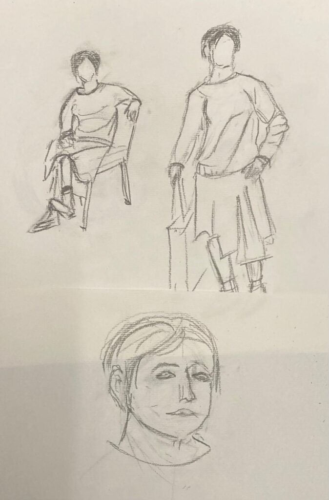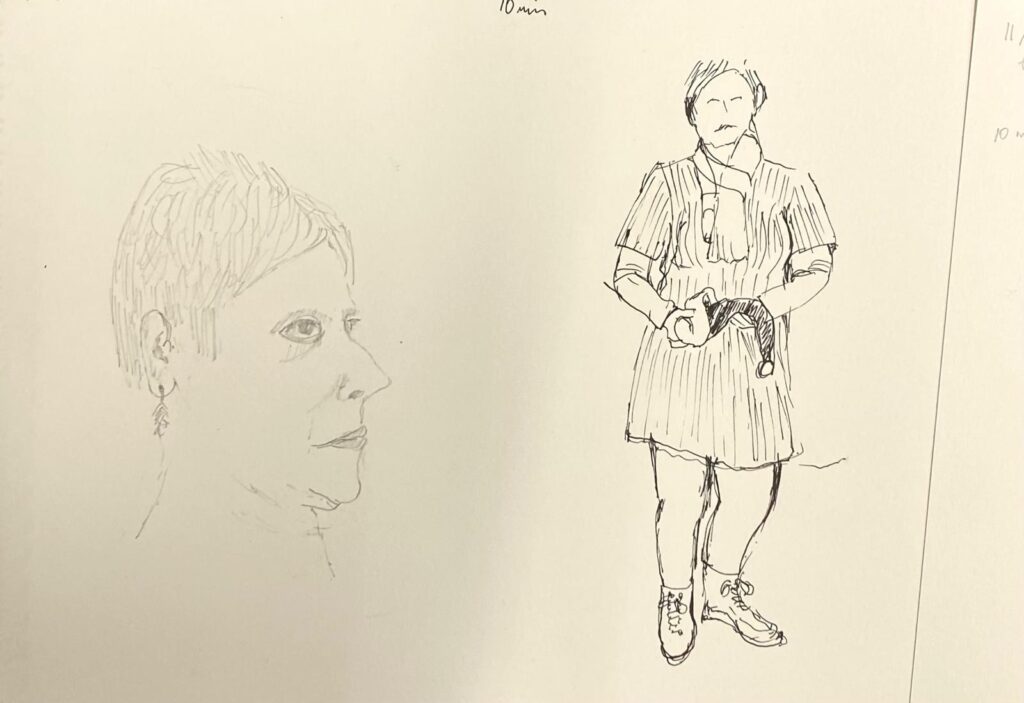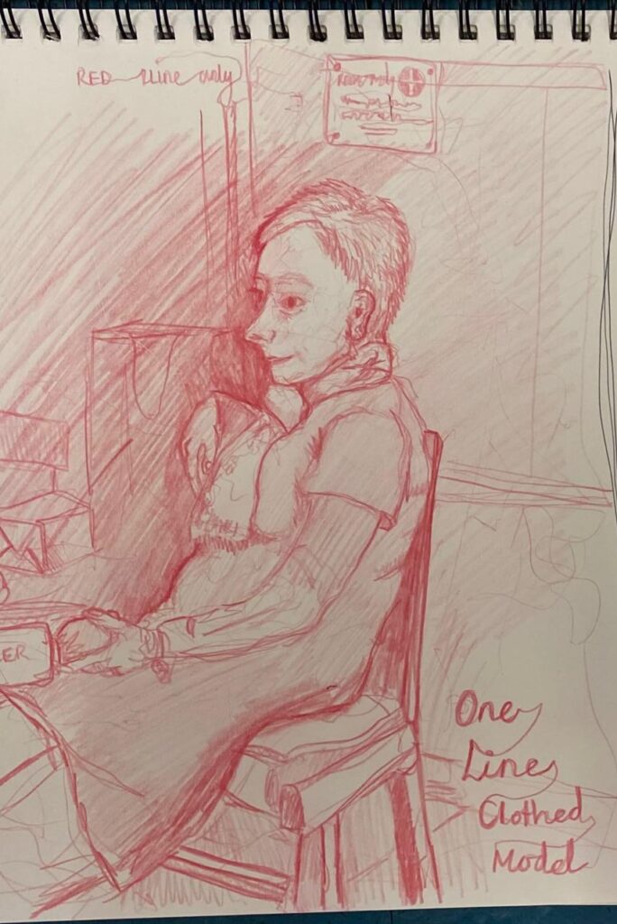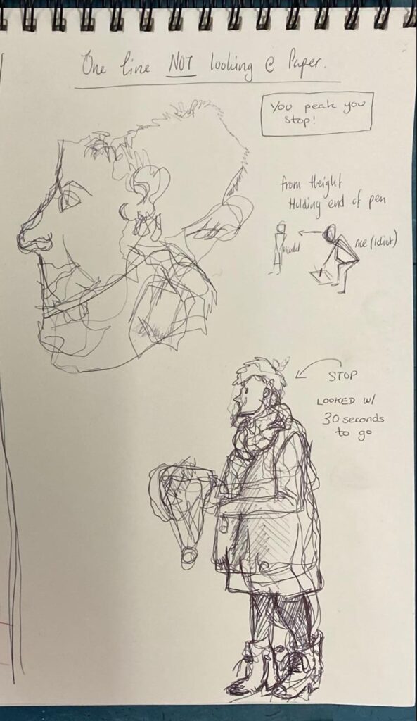 Another great model session… here is some of our work, with some challenging themselves to one-line drawing, and one-line NOT looking at the paper!
